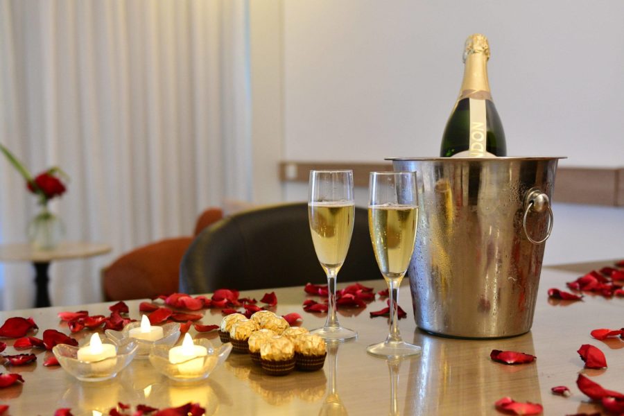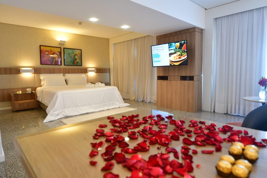 com decoração especial, Chandon geladíssima e mimos pensados para o casal.